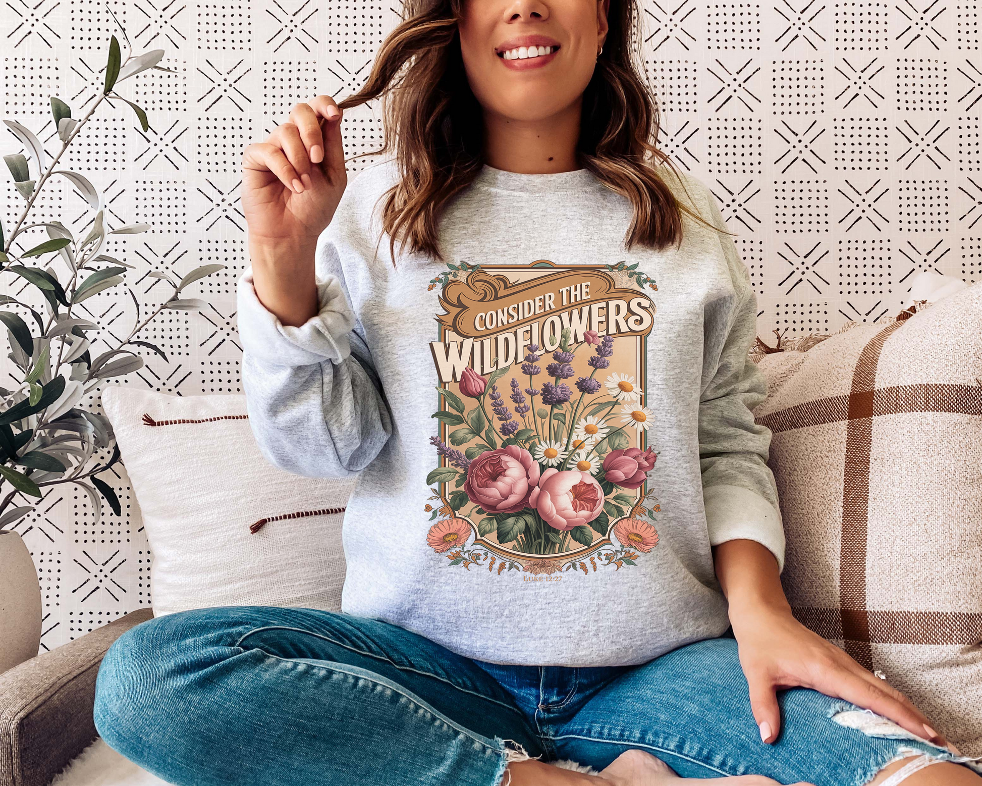 CONSIDER THE WILDFLOWERS LUKE 12:27 CREWNECK SWEATSHIRT