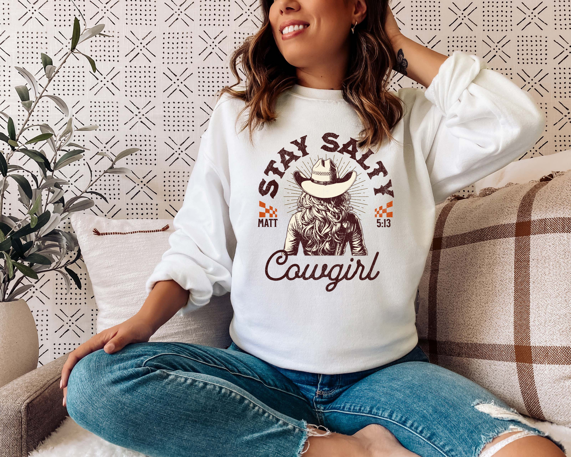 STAY SALTY COWGIRL MATTHEW 5:13 CREWNECK SWEATSHIRT